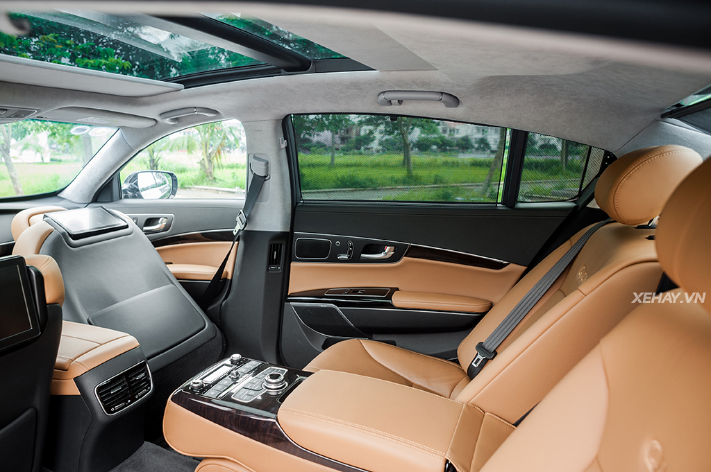 Khoang sau có không gian cho người ngồi rộng mênh mông chẳng kém một chiếc S-Class với bệ tỳ tay trung tâm có tích hợp bảng điều khiển hệ thống màn hình sau, điều hòa, làm mát và sưởi ghế. Thêm vào đó, người ngồi phía sau có thể ấn nút để ghế sau ngả hết cỡ, ghế hành khách phía trước có thể trượt và gập lên để tạo không gian tối đa cho ghế sau bên phải.