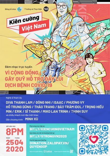 Đêm nhạc trực tuyến “KIÊN CƯỜNG VIỆT NAM - STAY STRONG VIETNAM” với mục tiêu gây quỹ Phòng chống đại dịch Covid-19 sẽ phát sóng vào lúc 20h tối ngày 25/4/2020 trên kênh YouTube “RSVP Vietnam”, mạng xã hội Lotus và kênh của các đối tác...