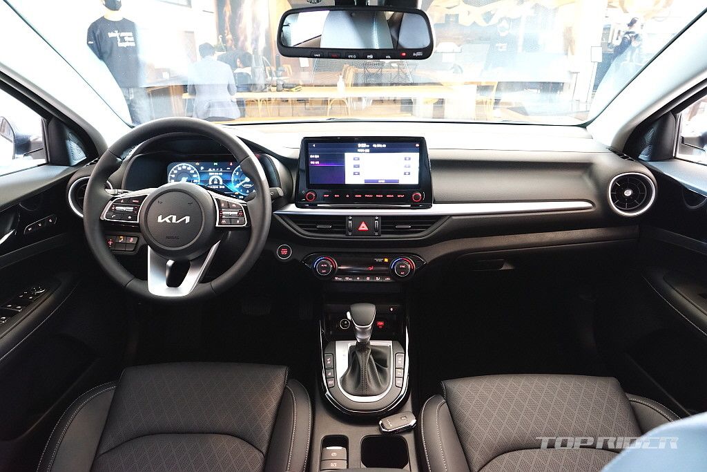 Đối với không gian nội thất, Kia Cerato 2022 được nâng cấp lên hệ thống màn hình giải trí 10,25 inch cỡ lớn, vô-lăng 4 chấu với logo mới, hệ thống điều hoà tự động 2 vùng, sưởi ghế, ghế bọc da, phanh tay điện tử và đặc biệt là trang bị đồng hồ công-tơ-mét dạng Full-LCD trên bản cao cấp, điều mà ngay tới đối thủ nặng ký là Mazda3 cũng chưa có được.