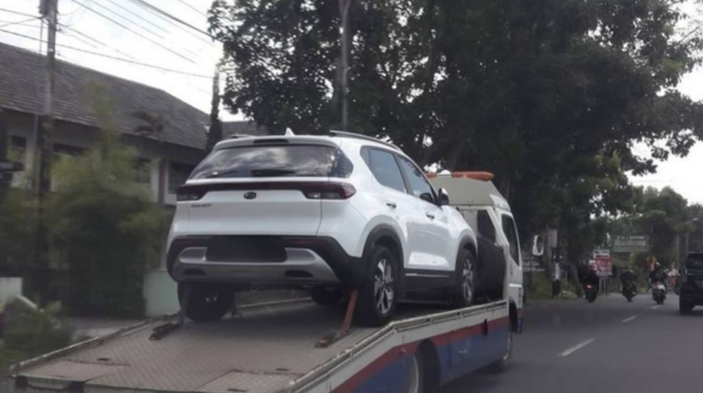 Hình ảnh Kia Sonet trên xe chuyên dụng di chuyển trên đường phố Quảng Nam, Việt Nam