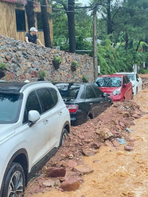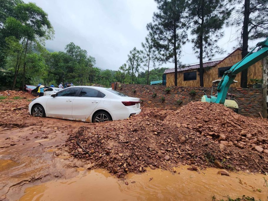Theo thông tin từ người dân, nước lớn tràn về, cuốn theo lượng bùn đất lớn khiến hàng chục người cùng ô tô mắc kẹt tại đây. Vụ việc xảy ra tại đội 4, thôn Ban Tiện - khu vực tập trung nhiều nhà nghỉ dưỡng dạng homestay trên địa bàn.