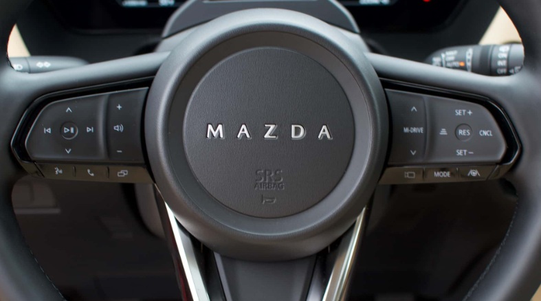 Để bù đắp cho việc thiếu vắng núm xoay, Mazda đã nâng cấp khả năng tương tác đa phương thức nhằm giữ cho mắt người lái luôn hướng về phía trước. Các nút bấm trên vô lăng được thiết kế chuyên dụng hơn cho camera 360 độ, chế độ lái M-Drive và chọn nguồn nhạc, với thông tin hiển thị trực tiếp trên cụm đồng hồ phía trước.