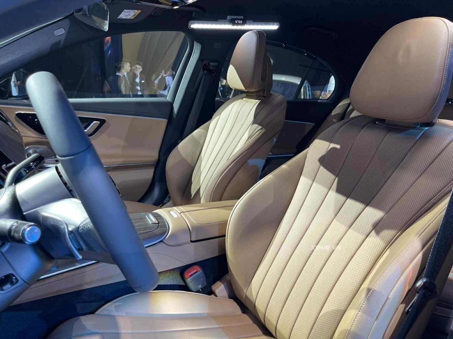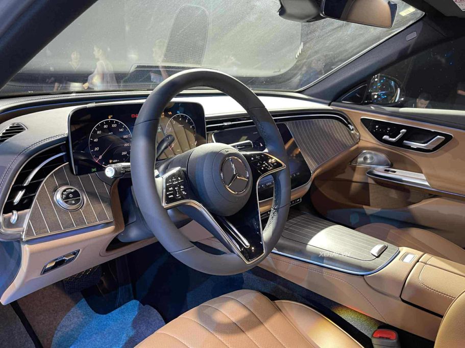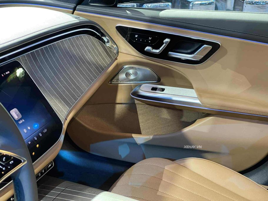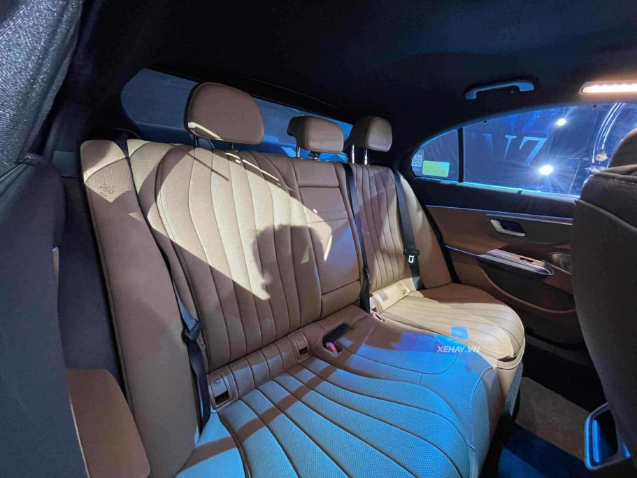 Mercedes-Benz tiếp tục chú trọng chi tiết bằng ốp bệ cửa phát sáng logo thương hiệu, chức năng cửa hít và thảm sàn tiêu chuẩn, khẳng định đẳng cấp của dòng sedan hướng đến người dùng doanh nhân hoặc gia đình thành đạt.