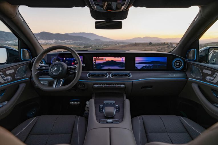 Nội thất chính là nơi chứng kiến những nâng cấp mang tính đột phá, lấy cảm hứng từ dòng sedan cao cấp S-Class. Tại khoang lái, hệ thống màn hình Superscreen trải dài toàn bộ bảng táp-lô kết hợp cùng màn hình hiển thị trên kính lái (HUD) công nghệ thực tế tăng cường 18 inch đã trở thành trang bị tiêu chuẩn. Vô-lăng thế hệ mới cũng được thay đổi sang dạng nút bấm vật lý kiểu rocker để tăng tính tiện dụng.