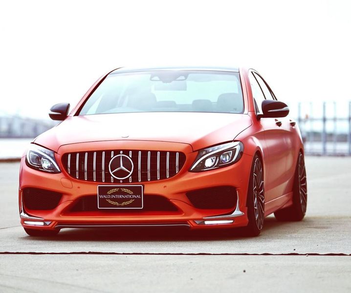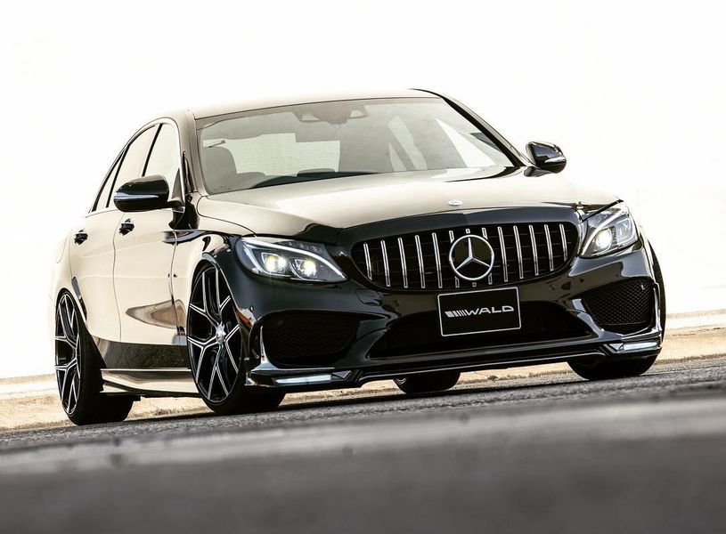 Chiếc Mercedes-Benz C200 trong bài được khoác bodykit AMG C63 nhưng đó chỉ là hàng giả, gói nâng cấp này được tạo ra bởi hãng độ Wald International đến từ Nhật Bản. Cụ thể, chiếc sedan được bổ sung lưới tản nhiệt Panamericana - từng là tính năng đặc trưng của các mẫu AMG.