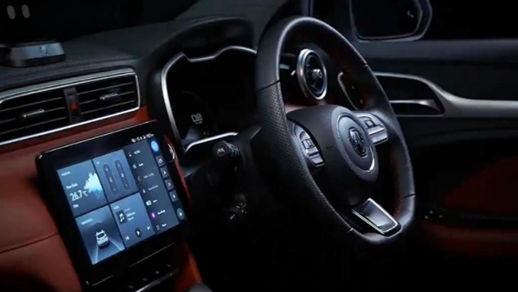 Nội thất của MG Astor được thiết kế với hai màu chủ đạo là đen và đỏ Sangria Red tương phản. Ngoài ra, Astor còn được trang bị vô lăng vát đáy thể thao và màn hình thông tin giải trí nằm độc lập trên mặt táp-lô tương tự như trên MG ZS.
