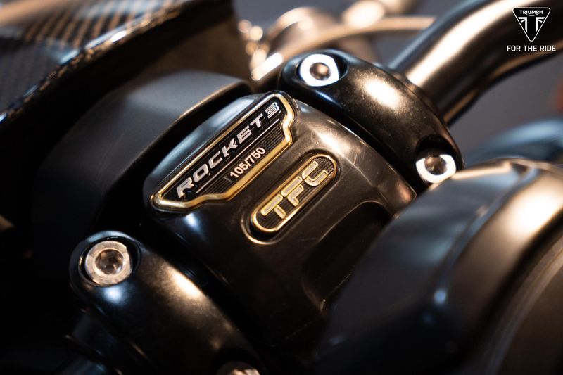 Ngoài ra, chiếc xe còn mang trên mình vẻ cơ bắp, thể hiện qua một số chi tiết như 3 cổ pô hình móc câu cùng hệ thống ống xả kép, cụm đèn pha chữ T chuẩn Triumph, bộ mâm nhôm 20 chấu và một bình xăng được vuốt dài đầy nam tính. Một số điểm nhấn về mặt công nghệ có thể kể tới trên Triumph Rocket III TFC chính là hệ thống phanh ABS khi vào cua, tính năng kiểm soát lực kéo, 4 chế độ lái, hỗ trợ sang số, kiểm soát hành trình, khả năng kết nối My Triumph, kiểm soát hill hold hay thậm chí cả cảnh báo áp suất lốp.