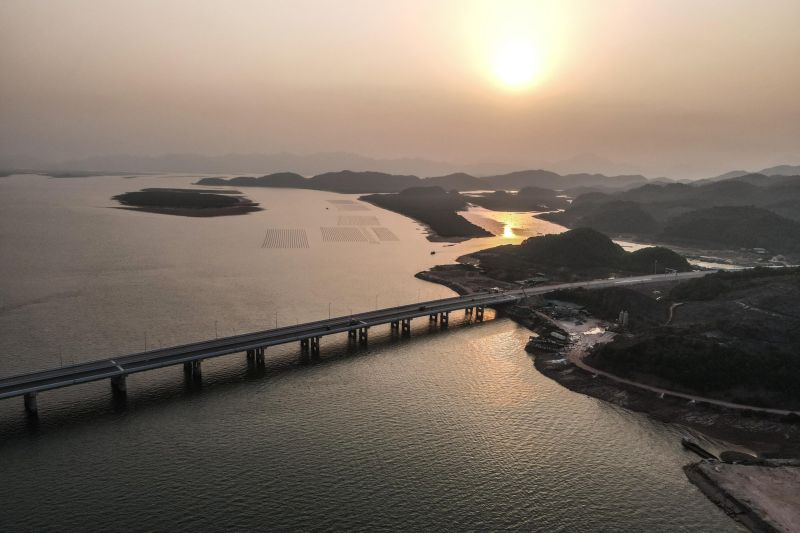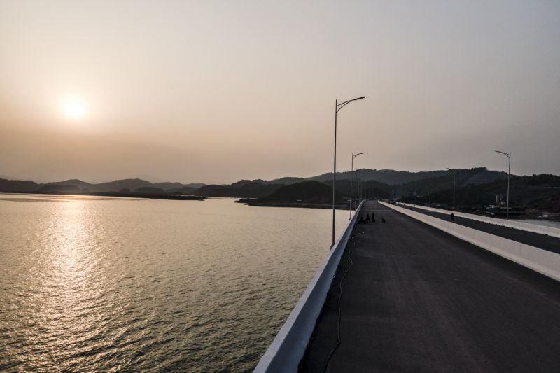 Cảnh hoàng hôn tuyệt đẹp ở đường dẫn nối cầu Vân Tiên với huyện Tiên Yên