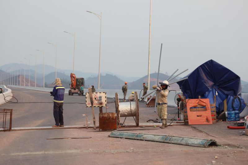 Các nhà thầu đang tập trung hoàn thiện các hạng mục còn lại như hệ thống điện chiếu sáng, thảm nhựa mặt cầu, hệ thống an toàn giao thông và cảnh quan...