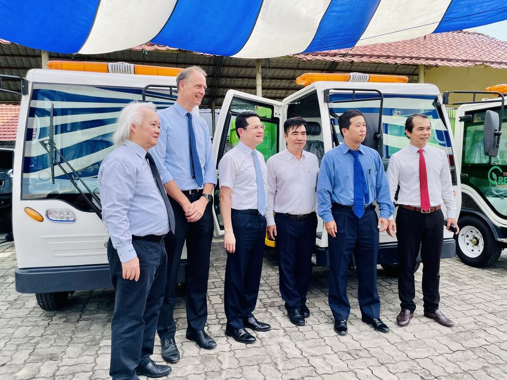Sáu xe tải điện được UNDP và Chính phủ Nhật Bản trao tặng cho TP Huế, dùng để vận hành, thu gom rác thải.