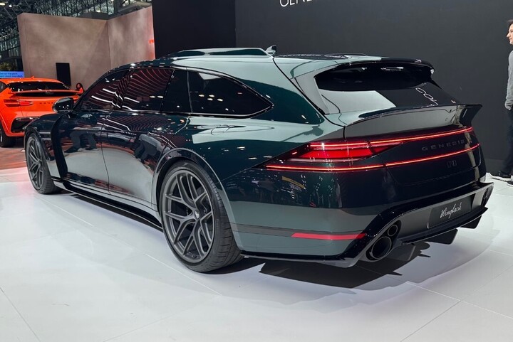 Genesis mang đến concept G90 Wingback với kiểu dáng wagon độc đáo. Xe sở hữu trục cơ sở dài, mái kéo dài và tỷ lệ thân xe cân đối. Thiết kế cản trước sau hầm hố hơn, đi kèm hệ thống ống xả đặc biệt. Hãng đang cân nhắc sản xuất số lượng giới hạn.