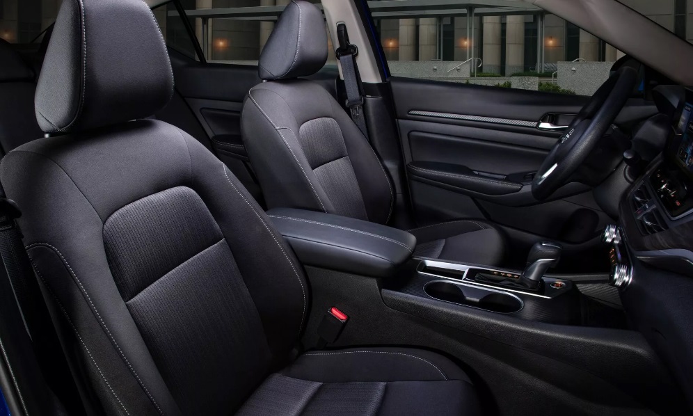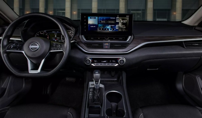 Về nội thất, Nissan Altima 2025 được nâng cấp hàng loạt tiện ích như: hệ thống kiểm soát khí hậu tự động hai vùng, hệ thống thông tin giải trí 12,3 inch lớn hơn và bộ sạc điện thoại thông minh không dây. Xe còn có thêm viền sợi carbon giả, bệ cửa có đèn và khởi động từ xa.