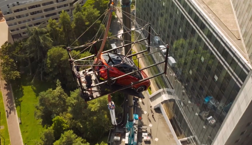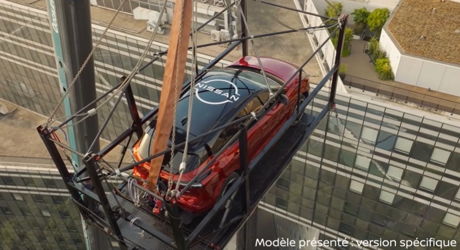 Theo đoạn video, chiếc xe Nissan Qashqai đã hoàn thành kỷ lục Guinness World Record trở thành mẫu xe Nhật nhảy bungee cao nhất thế giới khi lao xuống từ cần cẩu có độ cao 65 mét (bằng một tòa nhà khoảng 20 tầng với chiều cao mỗi tầng 3 mét).