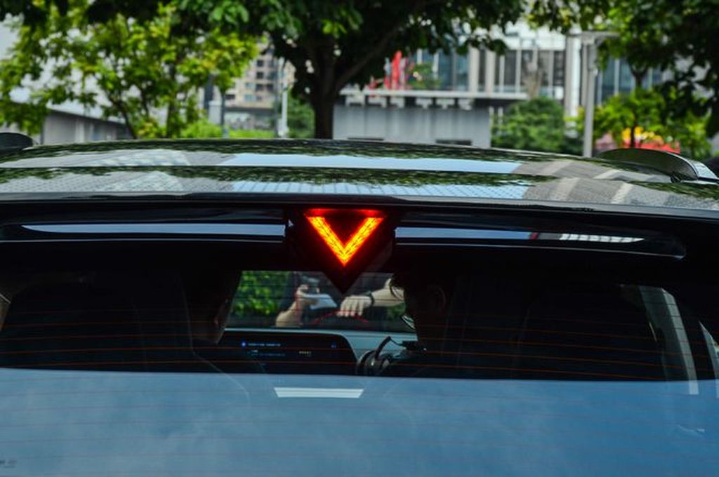 Đuôi xe cũng là một điểm nhấn của Venucia V-Online. Cụm đèn hậu được thiết kế mảnh mai, nằm ngang xuyên suốt đuôi xe. Theo hãng Venucia, đèn hậu của xe có chiều dài tới 1,6m, nó giúp tăng độ rộng thị giác lên rất nhiều và mang đến vẻ mạnh mẽ hơn. Đồng thời, phần đuôi cũng được thiết kế theo kiểu cắt vát, cánh gió mui “hầm hố” tích hợp đèn phanh trên cao, giúp tổng thể đuôi xe phù hợp hơn với thẩm mỹ của giới trẻ hiện nay.