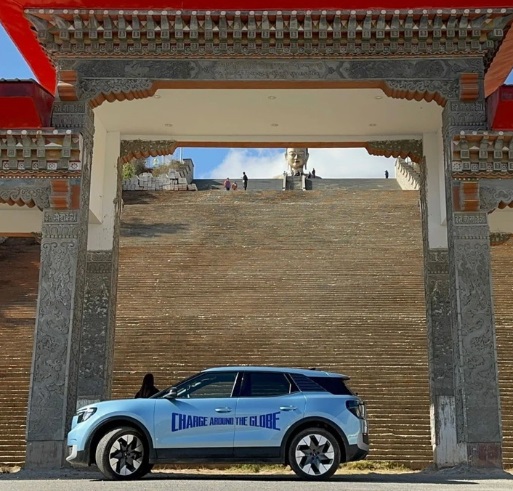 Thực tế, chiếc Ford Explorer EV bị chụp lại tại Malaysia đang thực hiện hành trình vòng quanh thế giới có tên "Charge Around the Globe". Dòng chữ trên thân xe đã chứng minh điều này.