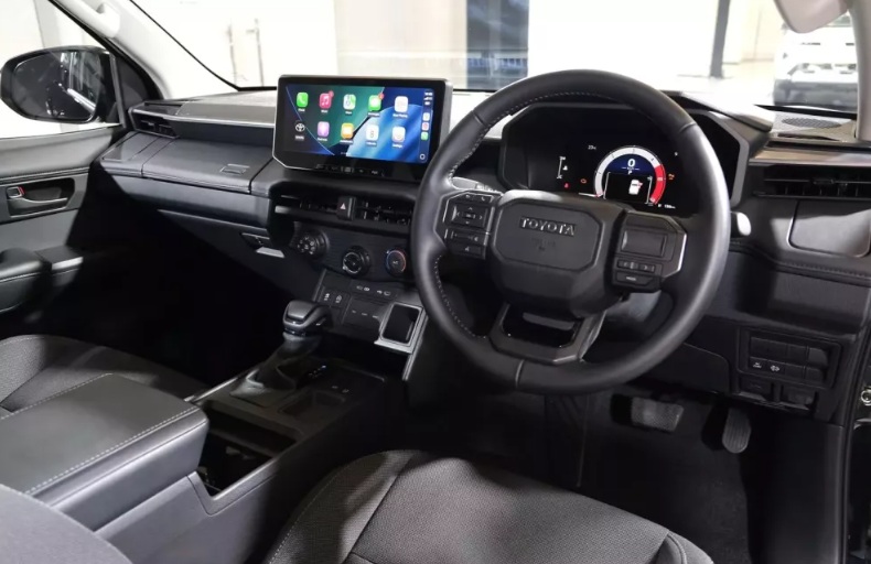 Khoang cabin của Hilux mới được nâng cấp mạnh mẽ với màn hình kỹ thuật số 12,3 inch sau vô-lăng, kết hợp màn hình trung tâm 12,3 inch hỗ trợ Apple CarPlay và Android Auto không dây. Xe còn có các tiện ích như: phanh tay điện tử, sạc không dây, điều hòa tự động hai vùng và hệ thống đèn LED toàn bộ được trang bị tiêu chuẩn trên hầu hết các bản cao.