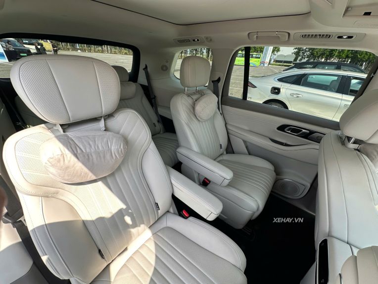 Mọi vị trí ngồi đều được trang bị tính năng chỉnh điện và sưởi, riêng hai hàng ghế đầu có thêm massage và thông gió. Sự linh hoạt được thể hiện qua lối đi giữa hàng ghế thứ hai rộng 180 mm và sàn phẳng, giúp việc di chuyển giữa các hàng ghế trở nên thuận tiện. Khi cần không gian chứa đồ, việc gập phẳng các hàng ghế phía sau sẽ mở rộng dung tích khoang hành lý lên đến 2.171 lít.