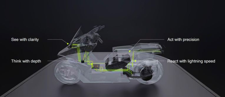 Điều đó đồng nghĩa với việc chiếc xe có thể tự giữ thăng bằng mà không cần người lái chống chân, một bước đột phá lớn trong công nghệ xe hai bánh.