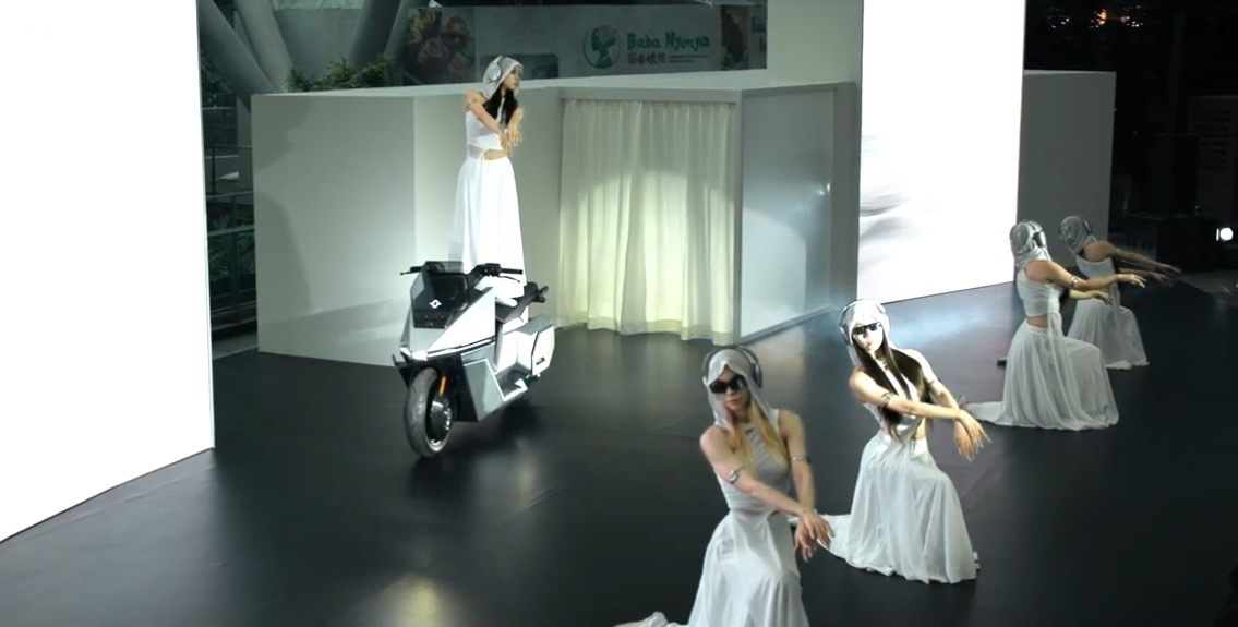 Trên sân khấu, mẫu OMO X xuất hiện cùng người lái nhưng vẫn giữ trạng thái đứng thẳng ổn định mà không cần chân chống. Cách chiếc xe lướt đi rồi dừng lại trong tư thế cân bằng khiến nhiều người liên tưởng đến một màn “múa” cơ khí hơn là trình diễn xe đơn thuần.