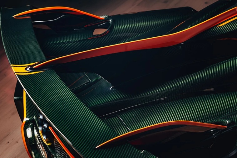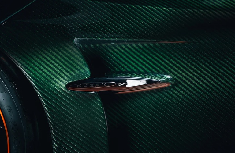 Chiếc Huayra 70 Trionfo đầu tiên vừa xuất hiện đã gây choáng ngợp với lớp vỏ bằng sợi carbon màu xanh Transparent Verde Smeraldo, điểm xuyết bởi các chi tiết màu cam tương phản đầy táo bạo. Đáng chú ý, ngoại trừ phần cửa và khung cửa sổ được giữ lại, toàn bộ các chi tiết ngoại thất đều được thiết kế mới hoàn toàn.