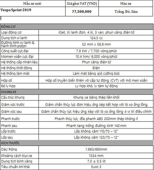 Ngày 1/11, Piaggio Việt Nam đã giới thiệu phiên bản Vespa Sprint 2019 được trang bị mới hệ thống đèn LED trước và sau hiện đại, cùng những chi tiết thiết kế mới đậm cá tính không những đảm bảo tính an toàn cao cho người lái, mà còn mang đến vẻ đẹp thiết kế trẻ trung và thời thượng đậm chất Ý.