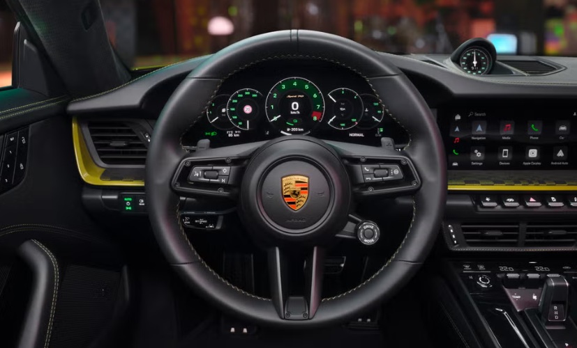 Về nội thất, khoang cabin của 911 Spirit 70 thừa hưởng những nâng cấp mới nhất với bảng đồng hồ kỹ thuật số 12,6 inch và màn hình trung tâm 10,9 inch. Ghế ngồi là loại Sport Seats Plus chỉnh điện 18 hướng, bọc da màu đen Basalt. Đặc biệt, mẫu xe này đánh dấu sự trở lại của họa tiết caro Pasha màu Olive Neo, tạo hiệu ứng thị giác 3D sống động, xuất hiện trên ghế, thảm lót khoang hành lý, bảng taplo và hộc găng tay.