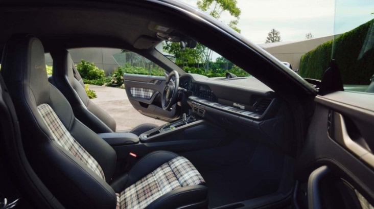 Mua gói tùy chọn này, khoang cabin cũng có nhiều chi tiết được bọc da cùng các điểm nhấn kẻ sọc và biểu tượng Porsche trên mui xe và vô lăng.