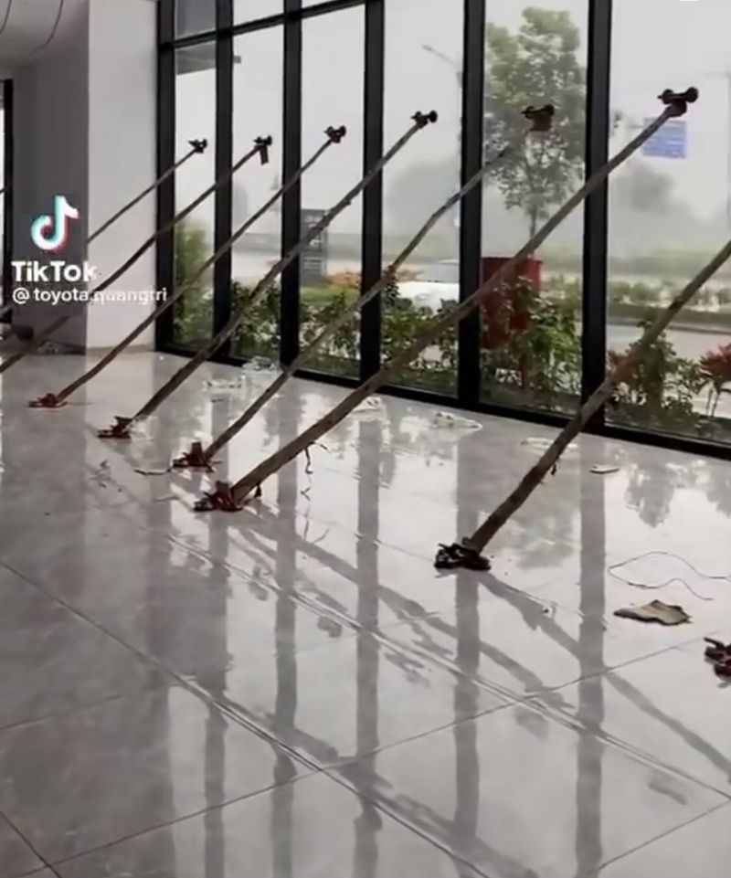 Một đoạn video được showroom Toyota Quảng Trị đăng tải cho thấy cách cửa hàng chống chọi với cơn bão mạnh nhất 20 năm qua.