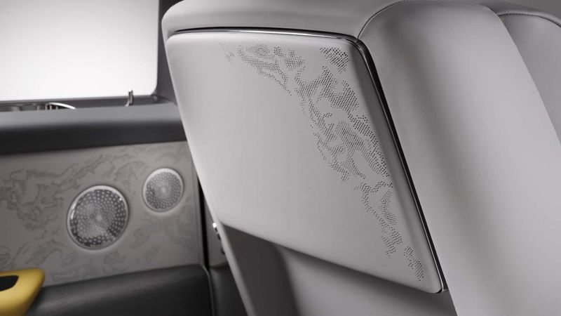 Gỗ ốp nội thất Grey Stained Ash cũng được bổ sung vào danh mục cá nhân hóa của mẫu SUV này. Với tùy chọn này, các nghệ nhân của Rolls-Royce sẽ phủ 6 lớp veneer và đánh bóng thủ công cho đến khi bề mặt chi tiết sáng loáng như gương.