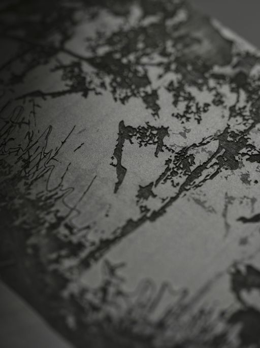 Một phần câu chuyện được khắc trực tiếp lên gỗ bằng công nghệ laser ở ba độ sâu khác nhau. Những đường khắc sâu hơn tạo mảng tối, tương phản với bề mặt sáng, mang lại hiệu ứng chuyển động tinh tế khi thay đổi góc nhìn.