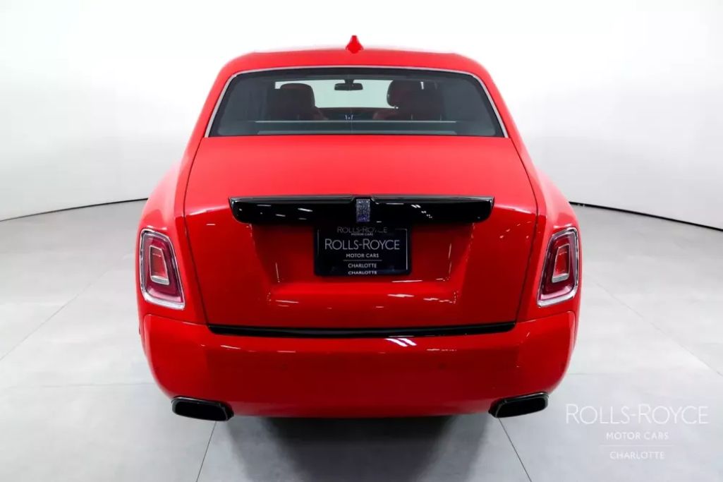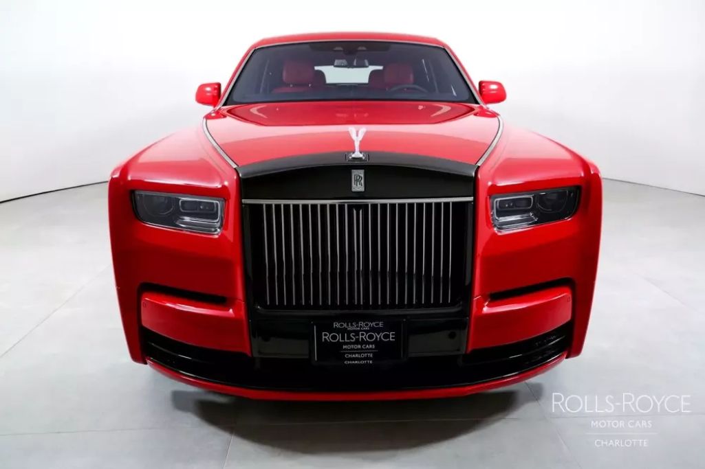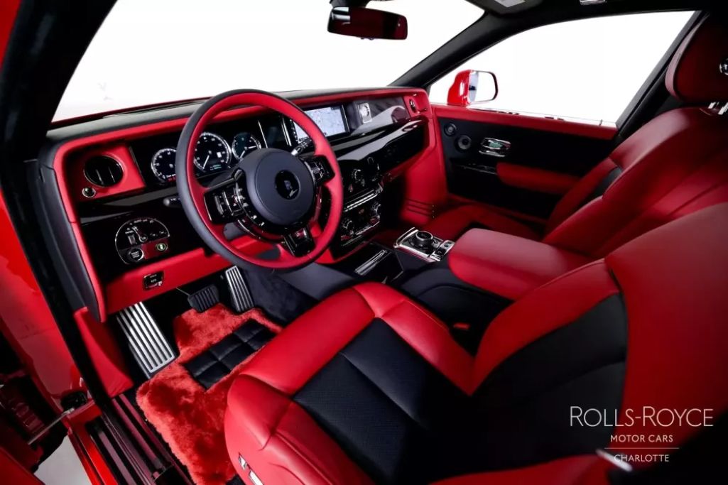 Khoác lên mình lớp sơn đỏ rực rỡ, chiếc Rolls-Royce Phantom này được hoàn thiện với lưới tản nhiệt đen tuyền, điểm xuyết viền chrome tối màu và vành 22 inch quen thuộc của Rolls-Royce. Khoang nội thất là sự kết hợp tinh tế giữa màu đỏ và đen, nổi bật với logo “RR” thêu ở tựa đầu, trần sao băng trứ danh cùng thảm lông cừu Phoenix đỏ sang trọng.