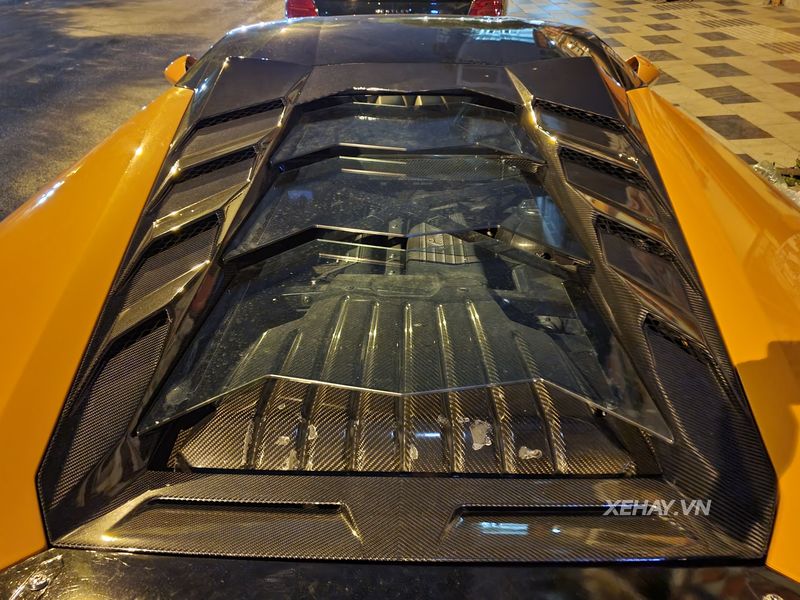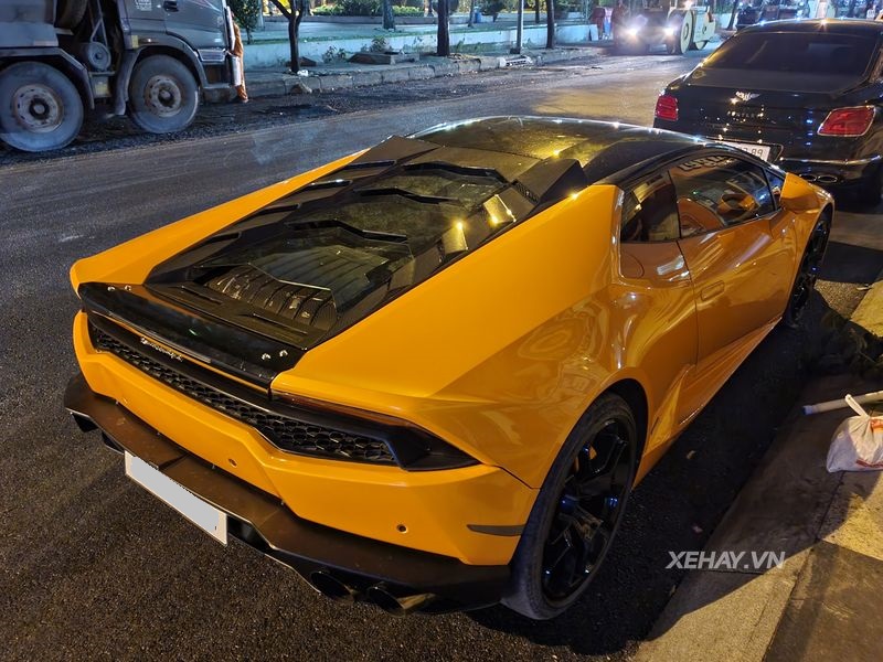 Tuy nhiên, ở thời điểm hiện tại, chiếc Huracan này đã tháo hết các chi tiết độ, chỉ để lại phần nắp động cơ sợi carbon. Ngoài ra, siêu xe Lamborghini Huracan vẫn giữ lại bộ la-zăng nguyên bản, đó là bộ mâm 5 chấu đơn dạng bông hoa sơn đen cùng cùm phanh màu vàng cam giống như màu sơn xe.