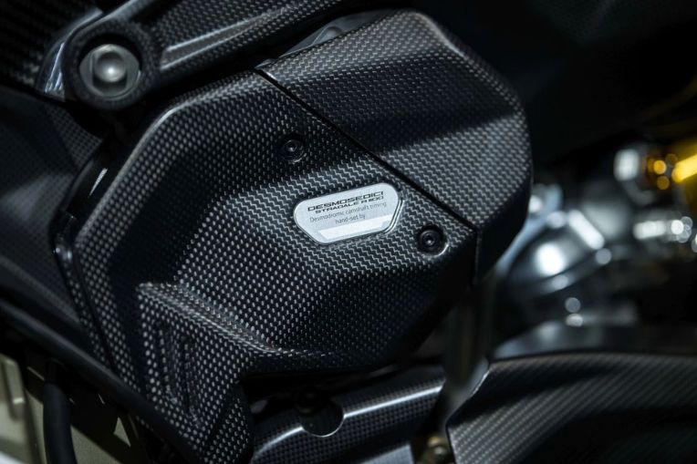 Điểm đặc biệt là mỗi khối động cơ đều được một kỹ sư Ducati canh chỉnh hệ thống trục cam desmodromic thủ công và ký tên xác nhận. Xe sử dụng hộp số đua với số mo (N) nằm dưới số 1 cùng tính năng khóa số mo (DNL) trên tay lái, giúp người lái tránh được việc vô tình mất lực phanh động cơ khi đang thi đấu. Những tinh chỉnh này giúp tỷ lệ công suất trên khối lượng đạt mức kỷ lục 1,48 mã lực/kg khi xe ở cấu hình đua (nặng 167 kg).