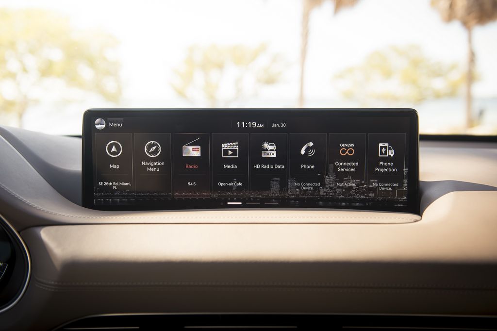 Mặc dù là phiên bản “nhẹ tiền” nhất nhưng các trang bị trên GV80 tiêu chuẩn vẫn khá đầy đủ bao gồm hệ thống treo tự cân bằng, bộ mâm 19-inch, hệ thống đèn LED, điều khiển điều hòa cảm ứng, màn hình 14,5 inch hiển thị hệ thống thông tin giải trí, 10 túi khí, hệ thống cảnh báo điểm mù và hơn thế nữa. Một số chi tiết còn thiếu trên phiên bản này có thể liệt kê như cụm đồng hồ tốc độ điện tử - một trang bị chỉ xuất hiện trên model V6.