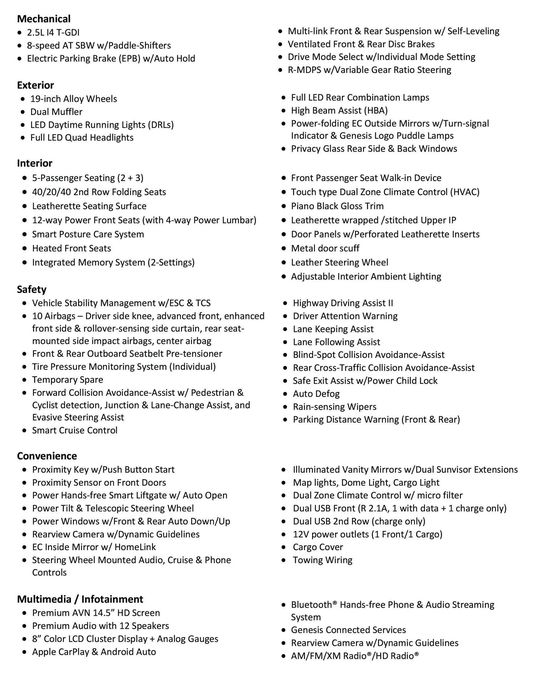 Đây sẽ là phiên bản tiêu chuẩn với khối động cơ 4 xy lanh tăng áp, dung tích 2,5 lít, sản sinh mức công suất khoảng 300 mã lực (thông số cuối cùng của phiên bản Mỹ vẫn chưa được xác nhận), truyền sức mạnh thông qua hệ dẫn động cầu sau và một hộp số tự động 8 cấp tiêu chuẩn. Và nếu mong muốn một hệ dẫn động AWD, khách hàng sẽ phải bỏ ra thêm 5.750 USD (133 triệu VNĐ). Ngoài ra, phiên bản sử dụng động cơ 4 xy lanh sẽ được cung cấp với 3 biến thể bao gồm: Standard, Advanced, Prestige.