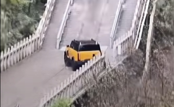 Tuy nhiên, màn trình diễn của Chery lại diễn ra theo kịch bản không như mong muốn. Theo đoạn video được ghi lại tại hiện trường, chiếc Fulwin X3L đang di chuyển lên dốc thì bất ngờ phát ra tiếng nổ lớn. Một bộ phận màu đen rơi khỏi gầm xe, khiến phương tiện mất lái, lệch sang phải rồi đứng khựng lại. Ngay sau đó, xe trượt lùi xuống bậc thang, cọ mạnh vào lan can và làm gãy một phần hàng rào bảo vệ, suýt rơi xuống khu vực sườn núi bên dưới.