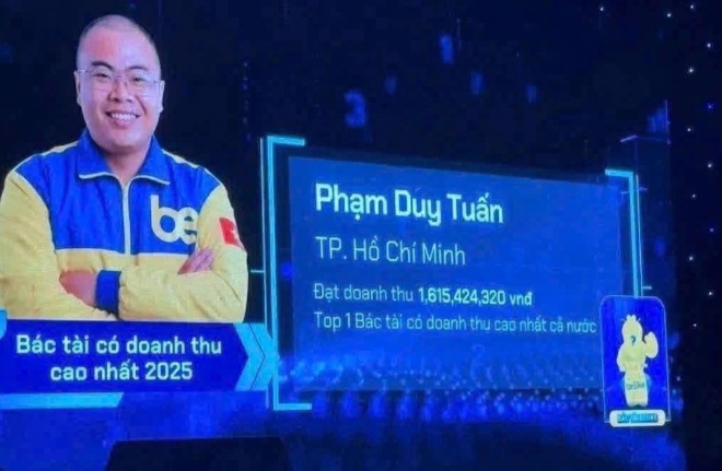 Mới đây, mạng xã hội lan truyền hình ảnh một tài xế công nghệ Be đạt tổng doanh thu hơn 1,615 tỷ đồng trong năm 2025. Tài xế có thành tích cao nhất đó là anh Phạm Duy Tuấn, hoạt động tại TP HCM.