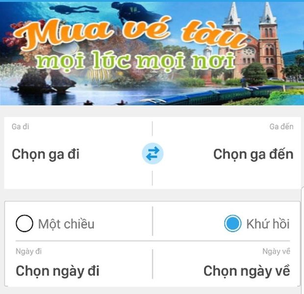 Khàng có thể tra tìm ứng dụng “vé tàu” của Tổng công ty Đường sắt Việt Nam trên các kho ứng dụng CH Play của Google hoặc Apple Store của Apple với logo ứng dụng: Vé tàu (Beta); từ khóa tìm kiếm: dsvn, vetau, duongsat. Sau đó thực hiện các bước mua vé tàu bình thường.