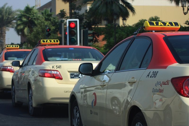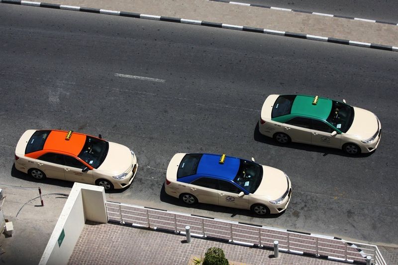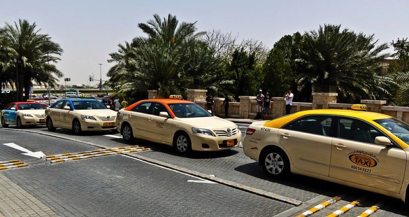 Ở Dubai, du khách giàu có sẽ sử dụng xe taxi là những chiếc Rolls-Royce màu trắng, trong khi những người còn lại sẽ chọn xe taxi của công ty Dubai Taxi Corporation (DTC), gồm phần lớn các xe hybrid như Toyota Camry, và gần đây thì có thêm cả vài trăm chiếc xe điện Tesla.