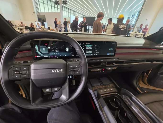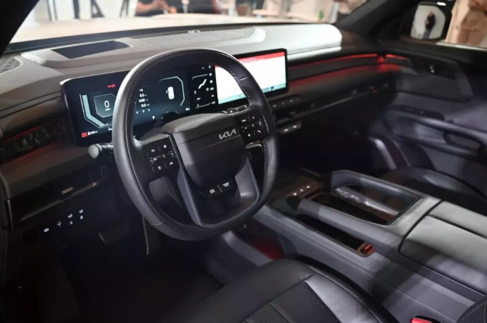 Về nội thất, khoang cabin của Telluride 2026 được thiết kế lại toàn diện, lấy cảm hứng từ mẫu EV9. Bảng táp-lô có phong cách tối giản và gọn gàng, với hai màn hình 12,3 inch nối liền trong cùng khung hiển thị, đi cùng vô-lăng bốn chấu và cần số đặt trên cột lái, giải phóng không gian trung tâm.