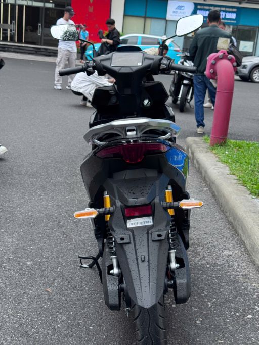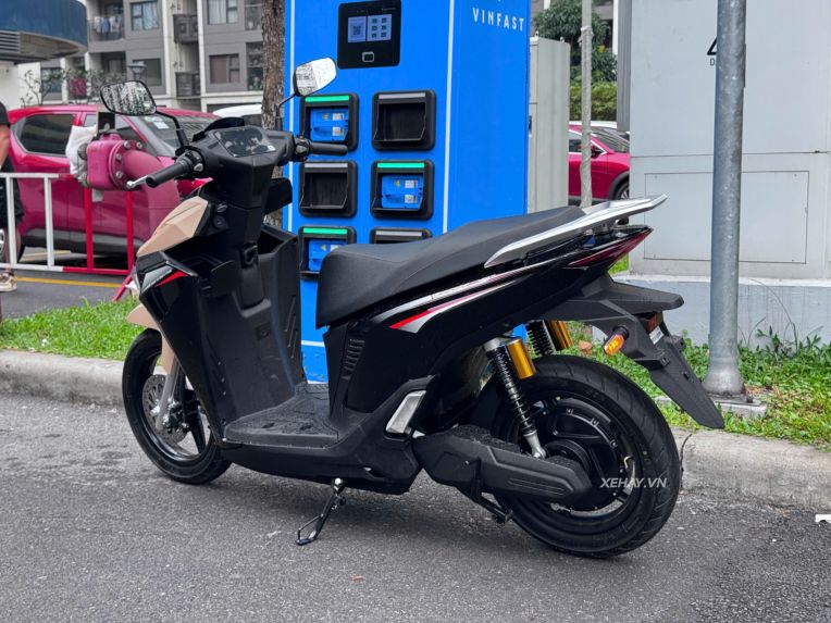 Logo chữ V đặc trưng được đặt ở vị trí trung tâm, tạo điểm nhấn nhận diện thương hiệu. Phía sau xe, cụm đèn báo rẽ được thiết kế tách rời gắn trên chắn bùn, kết hợp cùng phần đuôi vuốt nhọn, mang lại diện mạo tương đồng với các mẫu xe côn tay thể thao hiện nay.