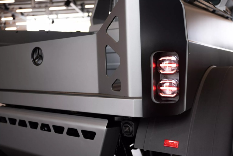 Mẫu Unimog đặc biệt này sở hữu thiết kế hầm hố là sự pha trộn giữa chất “cơ bắp” và nét tinh tế kiểu SUV cao cấp. Xe có lưới tản nhiệt, cản trước, bệ bước chân được tinh chỉnh. Bộ mâm beadlock 20 inch, lớp sơn xám mờ và hệ thống đèn LED độc quyền tạo nên vẻ ngoài hiện đại cho xe. Đặc biệt, Mercedes còn mạnh dạn loại bỏ gương chiếu hậu truyền thống để thay thế bằng hệ thống MirrorCam kỹ thuật số, giúp tối ưu tầm nhìn trong những địa hình phức tạp nhất.