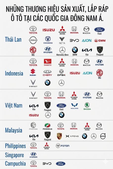 Các quốc gia khác trong khu vực như Philippines, Singapore và Campuchia hiện cũng đã có các cơ sở lắp ráp ô tô, song quy mô vẫn còn nhỏ và chưa tạo ra tác động đáng kể đến bản đồ công nghiệp ô tô toàn khu vực.