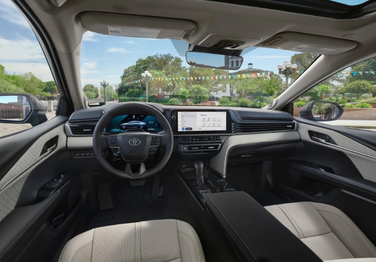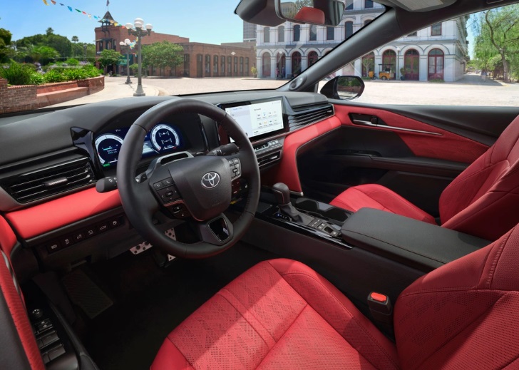 Ở bản SE, Toyota Camry 2024 sẽ được trang bị thêm ghế bọc da, bảng đồng hồ kỹ thuật số và màn hình cảm ứng trung tâm cùng có kích thước 12,3 inch.