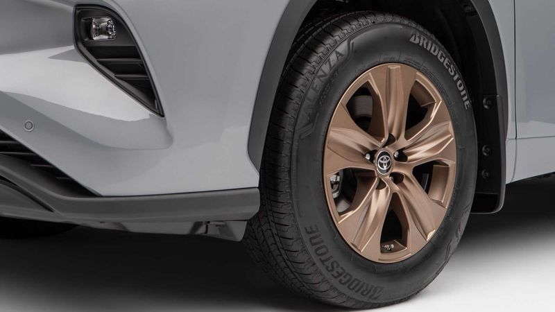 Phiên bản mới của Highlander được hoàn thiện trong màu xám Cement Grey hoặc trắng Wind Chill Pearl độc quyền, đây là màu mới của dòng Highlander 2022. Làm tròn diện mạo của chiếc SUV là bộ la-zăng 18 inch 5 chấu sơn màu đồng.