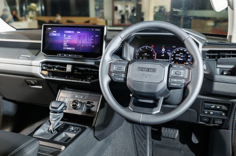 Về nội thất, khoang cabin của Hilux mới được nâng cấp mạnh mẽ với màn hình kỹ thuật số 12,3 inch sau vô-lăng, kết hợp màn hình trung tâm 12,3 inch hỗ trợ Apple CarPlay và Android Auto không dây. Xe còn có các tiện ích như: phanh tay điện tử, sạc không dây, điều hòa tự động hai vùng và hệ thống đèn LED toàn bộ được trang bị tiêu chuẩn trên hầu hết các bản cao.