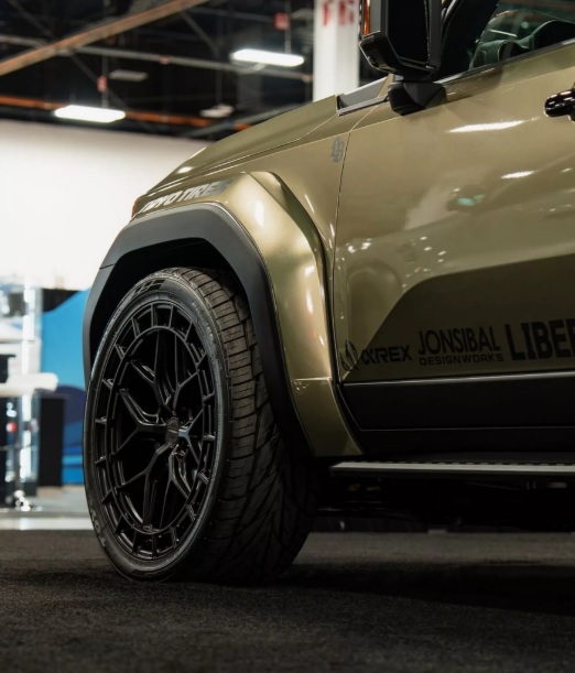 Chiếc SUV được trang bị bộ mâm hợp kim rèn 24 inch từ Vossen, đi kèm lốp Toyo Proxes ST III – loại lốp bốn mùa dành cho SUV hiệu năng cao. Dù Liberty Walk không công bố chi tiết về hệ thống treo, nhưng có thể thấy xe đã được hạ thấp và mở rộng cơ sở để tăng dáng thể thao.