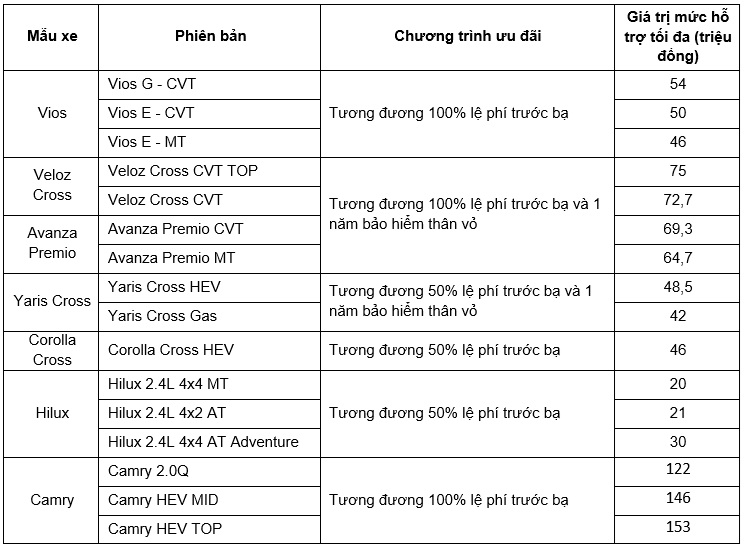 Trong tháng 12/2025, TMV và Công ty Tài chính Toyota Việt Nam (TFSVN), cùng hệ thống các Đại lý Toyota trên toàn quốc triển khai chương trình khuyến mại siêu hấp dẫn dành cho khách hàng. Thông tin chương trình cụ thể như sau: