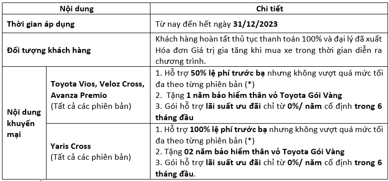 Nhằm mang đến cơ hội sở hữu xe dễ dàng cho khách hàng trong mùa mua sắm cuối năm 2023, Toyota và hệ thống đại lý trên toàn quốc tiếp tục triển khai loạt chương trình khuyến mại hấp dẫn cho các mẫu xe Toyota trong tháng 12: