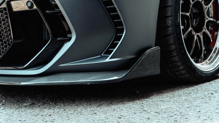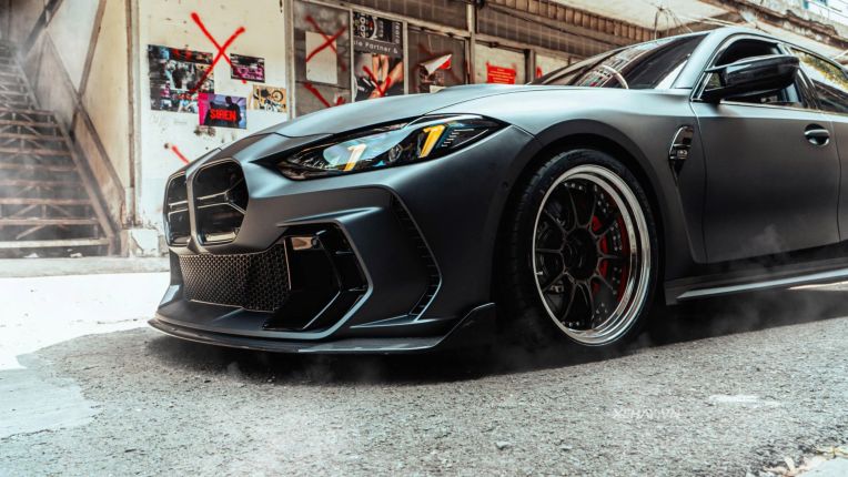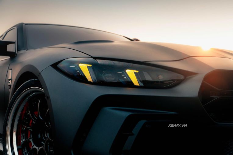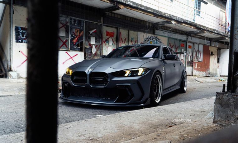 Sự điều chỉnh này giúp tổng thể mặt trước của xe trở nên hài hòa nhưng vẫn giữ được nét dữ dằn. Để lắp đặt vừa vặn bộ kit này, chiếc xe đã được nâng cấp hệ thống đèn pha LCI mới nhất của dòng M3, đây là yêu cầu bắt buộc để khớp với các đường cắt xẻ của cản trước mới.